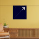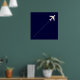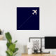 A white airplane and a dotted line on customizable ('customize it' tool) blue color