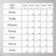 Poster planejador de abril de 2020 calendário com número