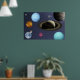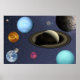Mercúrio, Vênus, Terra, Marte, Júpiter, Saturno, Urano, Netuno e o planeta anão Plutão são os planetas em nosso sistema solar e que variedade de planetas eles são, desde gigantes gasosos até a Terra do planeta aquoso, e do Mercúrio árido a Plutão gelado. (Observe que estes não podem ser dimensionados)