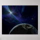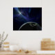 O conceito deste artista retrata o sistema do planeta pulsar descoberto por Aleksander Wolszczan em 1992. Wolszczan usou o radiotelescópio Arecibo em Porto Rico para encontrar três planetas - o primeiro de qualquer tipo já encontrado fora do nosso sistema solar - circulando um pulsar chamado PSR B1257+12. Pulsares são estrelas de nêutrons em rotação rápida, que são os núcleos desmoronados de estrelas massivas explosivas. Eles giram e pulsam com radiação, como um farol de farol. Aqui, os campos magnéticos torcidos do pulsar são realçados pelo brilho azul. Todos os três planetas pulsares são mostrados nesta imagem; os dois mais distantes do pulsar (mais próximos nesta visão) são do tamanho da Terra. A radiação de partículas pulsares carregadas provavelmente choveria sobre os planetas, fazendo com que seus céus noturnos se iluminassem com auroras semelhantes às luzes do Norte. Um desses aurores é ilustrado no planeta no fundo da foto. Desde essa descoberta histórica, mais de 160 planetas extrassolares foram observados em torno de estrelas que queimam combustível nuclear. Os planetas vistos por Wolszczan ainda são os únicos à volta de uma estrela morto. Também podem fazer parte de uma segunda geração de planetas, sendo a primeira destruída quando sua estrela explodiu. A descoberta de um disco empoeirado em torno de um pulsar pelo Telescópio Espacial Spitzer pode representar o começo de um sistema planetário igualmente "renascido".