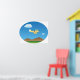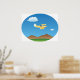 Um pequeno avião amarelo sobrevoando uma paisagem. Esta design parece realmente eficaz nesta Poster