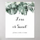 Este plano de amor floral branco de greenery tropical é perfeito para um casamento rústico ou chá de noiva. O design apresenta buquês de folhas de palmeira verdes com lindas flores brancas.