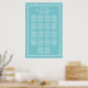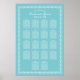 Um deslumbrante plano de assento de casamento em azul água e branco adornado com bordas ornamentais de flores vintage. Tipografia elegante e serifada exibe seus nomes e data de casamento acima de um layout de mesa bem organizado. Personalize cada detalhe para uma recepção fresca e sofisticada.