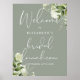 Este elegante plano de boas-vindas para almoço de noiva com folhagem botânica em verde salvia pode ser personalizado com suas informações em tipografia chic. Projetado por Thisisnotme©