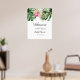 Plano de boas-vindas para chá de noiva moderno com ilustração de aquarela de folhas de monstera, folha de palmeira e flor de protea rosa. Perfeito para a sua festa de verão.