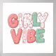 Embrace your fun and feminine energy with this super cute "Girly Vibe" graphic. Featuring a playful, chunky retro font in a trendy pastel palette of pink and teal, this design is all about celebrating a playful and lighthearted aesthetic. It's a perfect, stylish statement for anyone who loves a fun and cheerful look.