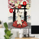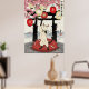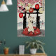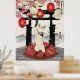 Poster Playful Japanese Cat Art Sakura Blossoms Lanterns