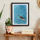 Poster Playful River Otter Swimming in Blue Water