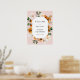 Dê boas-vindas aos convidados para a festa de bebê com este belo cartaz, que apresenta uma moldura dourada rodeada por flores de laranjeira, folhagens e clementinas. Adicione o nome da homenageada, data da festa e texto de boas-vindas personalizado usando os campos fornecidos.