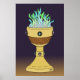 Uma xícara de joias que combina um cálice e uma tigela de bebendo de madeira de estilo medieval, ou uma geladeira, contém uma poção mágica fumante multicolorida nesta ilustração de fantasia de Richard H. Fay.