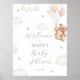 Bem-vindos convidados em estilo com este adorável poster de boas-vindas ao chá de fraldas, com um doce ursinho de pelúcia segurando balões. Esta placa adiciona um toque encantador e elegante à sua celebração. Perfeito para cumprimentar convidados e definir o tom para um evento memorável!