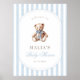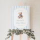 Bem-vindos convidados com charme de eterno. Esta placa de chá de fraldas do milênio apresenta listras aquáticas moles, um ursinho de pelúcia vintage, e tipografia elegante — a primeira impressão perfeita para uma celebração clássica.