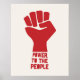 Este trabalho de arte apresenta um punho vermelho erguido e as palavras Poder às Pessoas.