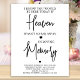 Honre seus entes queridos no dia do seu casamento com um letreiro de memorial personalizado. Este letreiro de memorial de casamento moderno é o sinal de mesa ou de reserva de assento perfeito para prestar uma homenagem aos seus entes queridos. Citação " Eu sei que você estaria aqui hoje se o Céu não estivesse tão longe... Em memória amorosa. " Esperamos que a nossa placa de memorial de casamento lhe traga paz, alegria e memórias felizes.