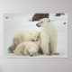 Polar ela-urso com filhotes. O polar que ela carrega com duas crianças na costa coberta de neve.