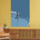 A manipulated photograph of a Pole Vaulter showing a blue sky with white clouds and a bridge
