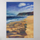Uma praia distante a oeste em Kauai. As formações na areia são calcárias duros, que às vezes são expostas quando a areia solta é varrida pelas ondas. A face do penhasco ao fundo é o início da robusta Costa da Pali.