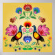 Pôster Polonês com Floral e Cockerels Decorativos