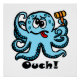 Um desenho de um polvo azul se tocando dizendo "ouch!"