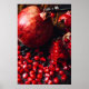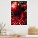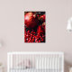 Pomegranato inteiro e aberto com sementes em placa metálica