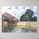 Alfred Sisley. Ponte Hampton Court. Paisagem de verão. Numerosos barcos na margem do rio. Uma bela ponte arcaica atravessa o rio. Há competições no rio. Kayak Paddlers flutuam de baixo dos trechos da ponte. Há árvores e casas verdes grandes e bonitas no fundo. Reprodução de famosas imagens de arte no dominio público.