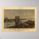 1885 Visão histórica da ponte do Brooklyn (The East River Suspensão Bridge), que fica a sudeste do rio East, desde Manhattan até Brooklyn, Nova Iorque, Statan Island, Nova Jersey e a Estátua da Liberdade. Imagem de alta resolução adequada para cópias grandes ou pequenas. É uma reprodução que pode ter sido digitalmente aprimorada para reparar falhas, manchas importantes, etc.