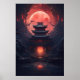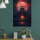 Poster Ponte Yin e Yang e Templo em Cyberpunk Neon