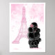 Pôster Poodle Preto com Torre Eiffel Rosa