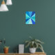 Este design de poster de pop de arte, inspirado na década de 60, tem raios laranja brilhantes psicodélicos / explosões de sol a disparar num padrão geométrico. Esse design funk, minimalista e ultra-mod tem doze raios em diferentes tons de azul neon. É groovy, querida.