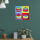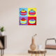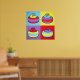 A playful celebration of color, texture, and repetition, this design presents a quartet of stylized curling stones rendered in a bold, painterly pop-art style. Each stone sits within its own vibrant color field, swapping hues and combinations to create a rhythmic visual variation that feels both cohesive and dynamic. The thick, hand-drawn outlines and visible brush-like textures give the forms a tactile, almost folk-art warmth, while the simplified shapes and high-contrast palette lend a modern, graphic punch. The result is a lively, whimsical composition that captures the spirit of curling through a lens of cheerful abstraction and expressive color.