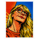 A BOLD POP ART PORTRAIT of a woman inspired by vintage comic-book style. Featuring striking lines, vibrant colours, and expressive detail, this artwork adds a confident, modern statement to any space or product.
