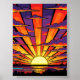 Inspirada pelo espírito revolucionário de Warhol e Lichtenstein, esta poster desconstrói o pôr do sol tradicional e reconstrói-o com a ousada linguagem da Pop-arte. Usando cores saturadas, não tradicionais e técnicas gráficas como pontos do Ben-Day e contornos fortes, a cena transforma um espetáculo natural num pedaço de estilo produzido em massa legal. Isto é mais do que uma fotografia de um pôr do sol; é uma celebração da cor, da forma, e do movimento artístico que ousou ser diferente. Um imperativo para amantes da arte moderna e design ousada.