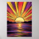 Inspirada pelo espírito revolucionário de Warhol e Lichtenstein, esta poster desconstrói o pôr do sol tradicional e reconstrói-o com a ousada linguagem da Pop-arte. Usando cores saturadas, não tradicionais e técnicas gráficas como pontos do Ben-Day e contornos fortes, a cena transforma um espetáculo natural num pedaço de estilo produzido em massa legal. Isto é mais do que uma fotografia de um pôr do sol; é uma celebração da cor, da forma, e do movimento artístico que ousou ser diferente. Um imperativo para amantes da arte moderna e design ousada.