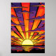 Inspirada pelo espírito revolucionário de Warhol e Lichtenstein, esta poster desconstrói o pôr do sol tradicional e reconstrói-o com a ousada linguagem da Pop-arte. Usando cores saturadas, não tradicionais e técnicas gráficas como pontos do Ben-Day e contornos fortes, a cena transforma um espetáculo natural num pedaço de estilo produzido em massa legal. Isto é mais do que uma fotografia de um pôr do sol; é uma celebração da cor, da forma, e do movimento artístico que ousou ser diferente. Um imperativo para amantes da arte moderna e design ousada.
