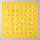 This design features popped popcorn kernels arranged in a neat grid on a yellow background. One kernel is only half popped.