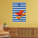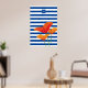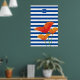 Ouro de laranja e papoila vermelha pop contra faixas azuis e brancas profundas para estilo chic de verão ousado elegantemente terminou com seu monograma dentro um quadrado azul escuro pequeno e clássico. ♡ Idyllfire