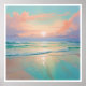 Pôr do sol numa paisagem tranquila de praia. Ilustração de aquarela pastel macio. Arte decorativa na parede.