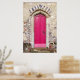 Porta rosa/fushia antiga num edifício italiano com pedras e tijolos antigos.