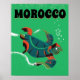 Poster de viagens vintage marroquina. Um viagem de marroquino com uma tartaruga-do-oceano de estilo vintage.