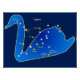 Les étoiles (avec leur nom) du Cygne répartie sur la silhouette de l'animal sur un dégradé de bleu.