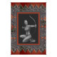Esta poster mostra uma foto de uma escultura cerâmica da Deusa Artemis. Esta foi uma escultura que fiz nos anos 90. A foto é preto e branco. A fronteira é vermelha e prata. A fronteira é minha azulejo feita à mão, editada digitalmente.