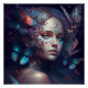 Traga-se para um reino mágico com este trabalho de arte mesmerizador! Uma jovem se senta envolta por um caleidoscópio de borboletas coloridas. Seu cabelo preto e seu vestido contrastam vividamente com o arco-íris de asas azuis, laranja e brancas ao seu redor. Ela parece flutuar em uma dimensão nebulosa onde sonho e realidade se misturam, com espirais de cor rosa e roxo no fundo. Os tamanhos e posições variados das borboletas criam interesse visual e energia. Eles estão emergindo de sua imaginação, ou ela está descobrindo maravilhas na natureza? Esta pintura digital vívida e surreal acende a imaginação com sua interação de cor, textura e mistério. Coloque-o em sua casa ou escritório para adicionar um toque encantador de capricho e vibração. Excelente para o quarto da sua filha!