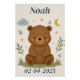 Crie um eterno com este adorável poster de urso personalizado para crianças. Com um urso doce e adormecido rodeado por estrelas, folhas, libélulas e uma lua de sonho, esta design traz calor e charme a qualquer berçário, quarto ou sala de jogos. O nome e a data de nascimento são totalmente personalizáveis, fazer-os um presente pensativo para recém-nascidos, chás de fraldas, aniversários ou batismos. As cores suaves da terra e a design suave fazem dela uma combinação perfeita para florestas ou interiores naturais. Quer você esteja decorando o espaço do seu bebê ou procurando por um presente sincero, esta peça única de arte certamente se tornará uma favorita. Impresso com detalhes de alta qualidade e uma atmosfera pacífica, celebra a beleza da nova vida e a alegria da conexão pessoal. Uma maneira adorável de marcar a chegada de uma criança ao mundo, esta poster transforma um nome e uma data em uma arte de parede duradoura cheia de amor.