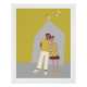poster met afbeelding van man en vrouw met huis en vogeltjes, kleur geelgroen en bruin