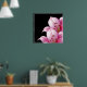 Poster shown with a pretty pink lillie's print on a black background color.
