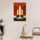 Chicago World Fair poster. A exposição Fair Century of Progress de Chicago, de 1933, foi realizada para celebrar o centenário da cidade e foi construída em torno de um tema de inovação tecnológica. O lema da feira era: "Achados da ciência, Aplicações da indústria, Conformações do Homem". Esta poster mostra o Edifício Federal com uma cúpula de ouro e três torres de flauta que representam os três ramos do Governo dos Estados Unidos.
