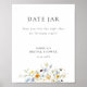 Cartaz elegante do pote de datas para chá de noiva com flores silvestres delicadas.