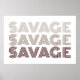 Poster com a expressão de tendência "selvagem" escrita três vezes num legal escrevendo de cor escura que desaparece da luz para a escuridão.