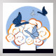 Poster Praça Azul & Laranja Buquê e Borboletas