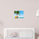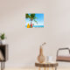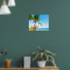 Este design apresenta pranchas coloridas que se erguem na areia com uma palmeira, praia e oceano ao fundo. #surf #surfista #diversão #legal #praia #tropical #esporte #relaxa #surfing #home #decor #art